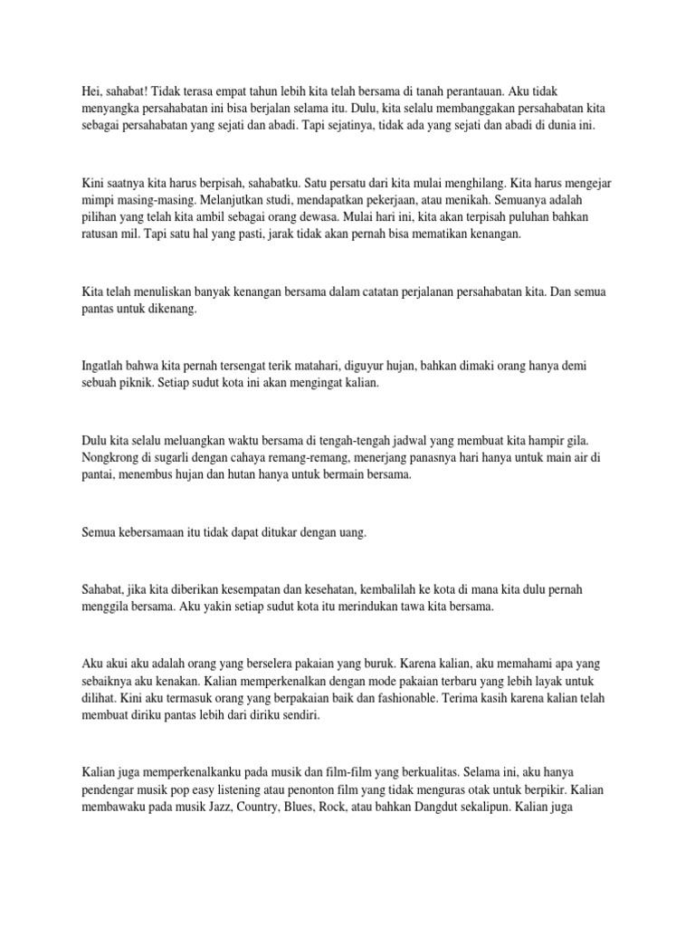 Berikut merupakan beberapa contoh untuk letter singkat untuk teman